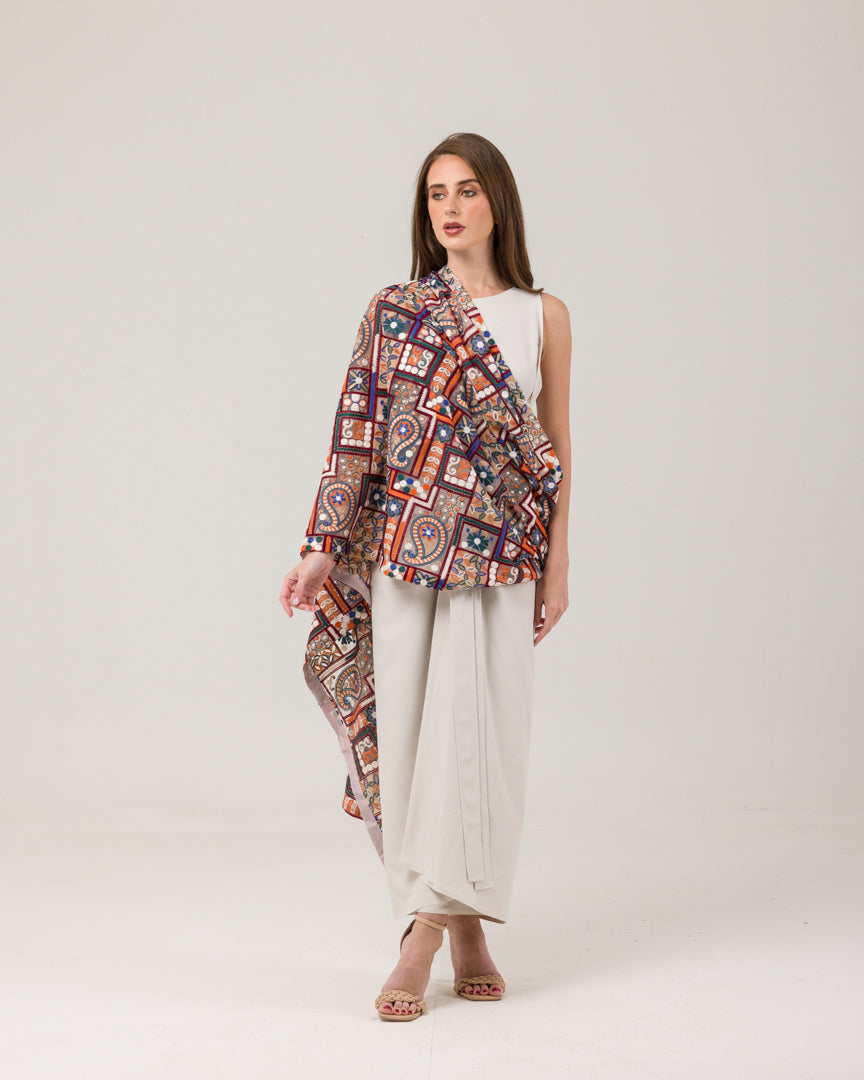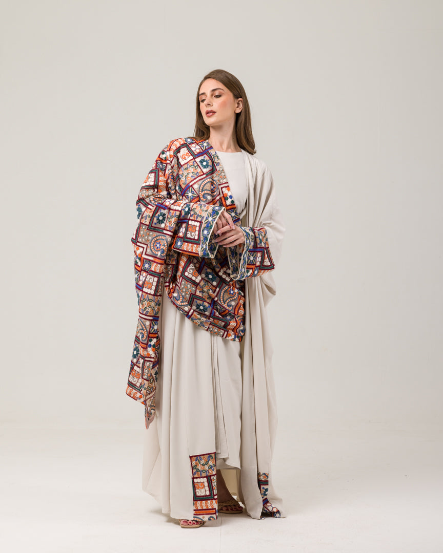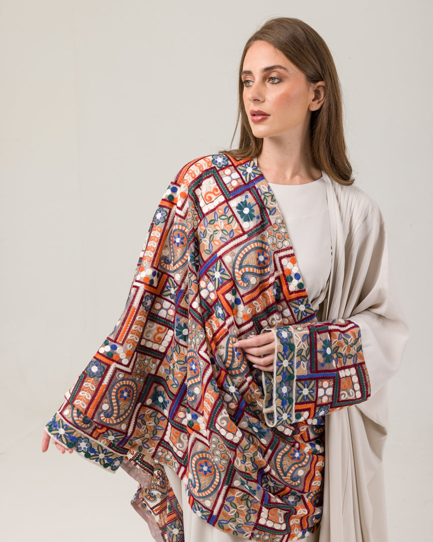 سترة الشال البوهيمية مصنوعة من قماش التول الحريري ومطرزة بشكل جميل بخيوط القطن. يضيف التطريز لمسة من الأناقة والسحر إلى السترة، ويمنحها تصميمًا بوهيميًا رائعًا وفاخرًا. يمكن تصميم هذه القطعة متعددة الاستخدامات بطرق مختلفة. يمكن ارتداؤه مع عباية أو فستان ناعم أو مع تنورة أو بنطال. إنها مناسبة لجميع الألوان والأحجام، مما يجعلها إضافة متعددة الاستخدامات لأي خزانة ملابس. على وجه التحديد، بالنسبة لموديل العباية مقاس 56، فإن سترة الشال البوهيمية ستوفر ملاءمة مثالية وتكمل المظهر العام.