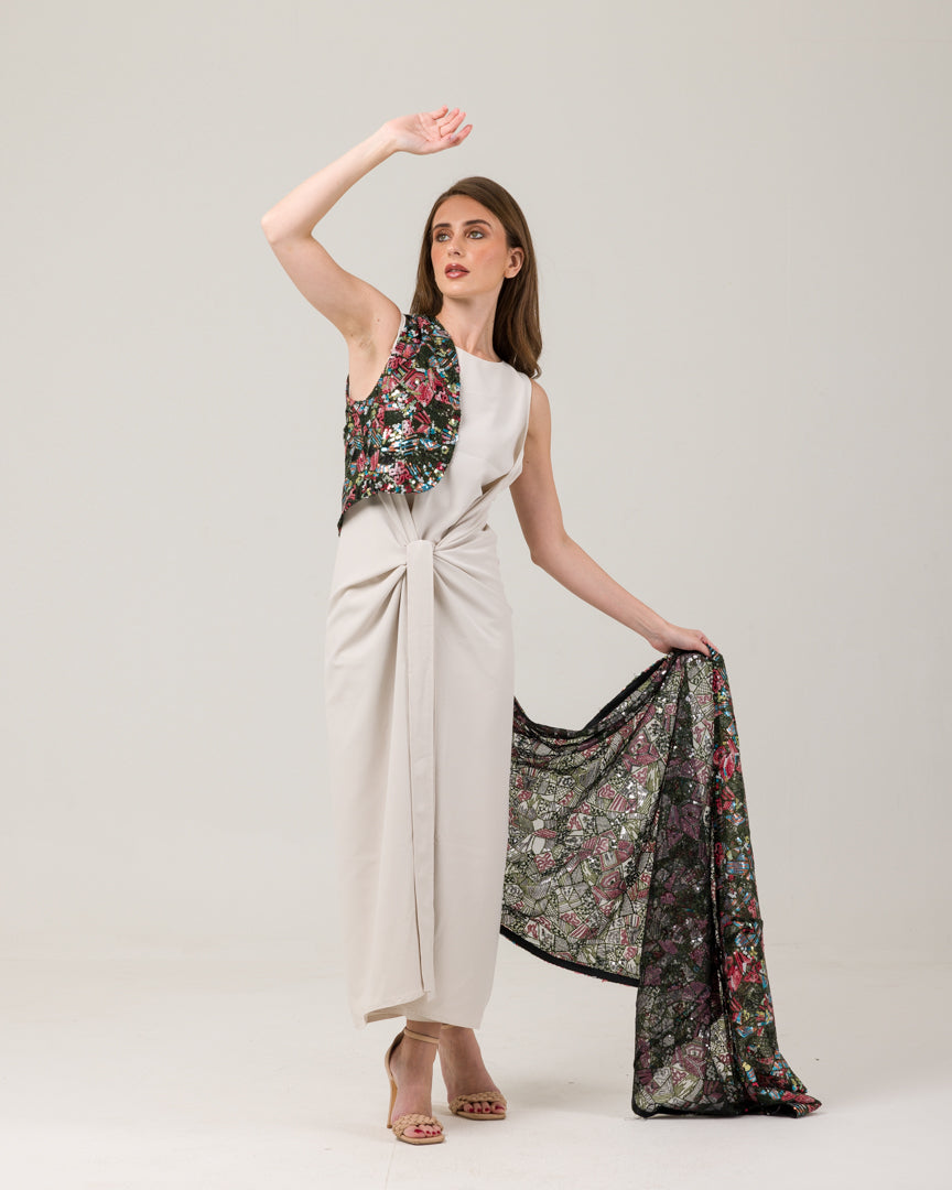 الشال ذو التصميم الخاص لدى خانم للعبايات هو قطعة مذهلة مصنوعة من قماش التول. يتميز بتطريزات معقدة مع الترتر المرتب بأشكال هندسية، مما يضفي لمسة من الأناقة والتألق على مناسباتك الخاصة. يمكن تنسيق هذا الشال بسهولة مع مختلف الملابس، بما في ذلك السراويل والتنانير وحتى الفساتين الناعمة. تصميمها متعدد الاستخدامات يسمح لها باستكمال جميع الألوان، وعندما تقترن بالعبايات، يمكنها تحويل مظهرك العام بالكامل. إنه متوفر بمقاس واحد يناسب الجميع، مما يضمن ملاءمة مريحة وأنيقة للجميع. متوفرة بلونين وبكميات محدودة جداً جاهزة للشحن، يرجى ملاحظة أن مقاس موديل العباية هو 56